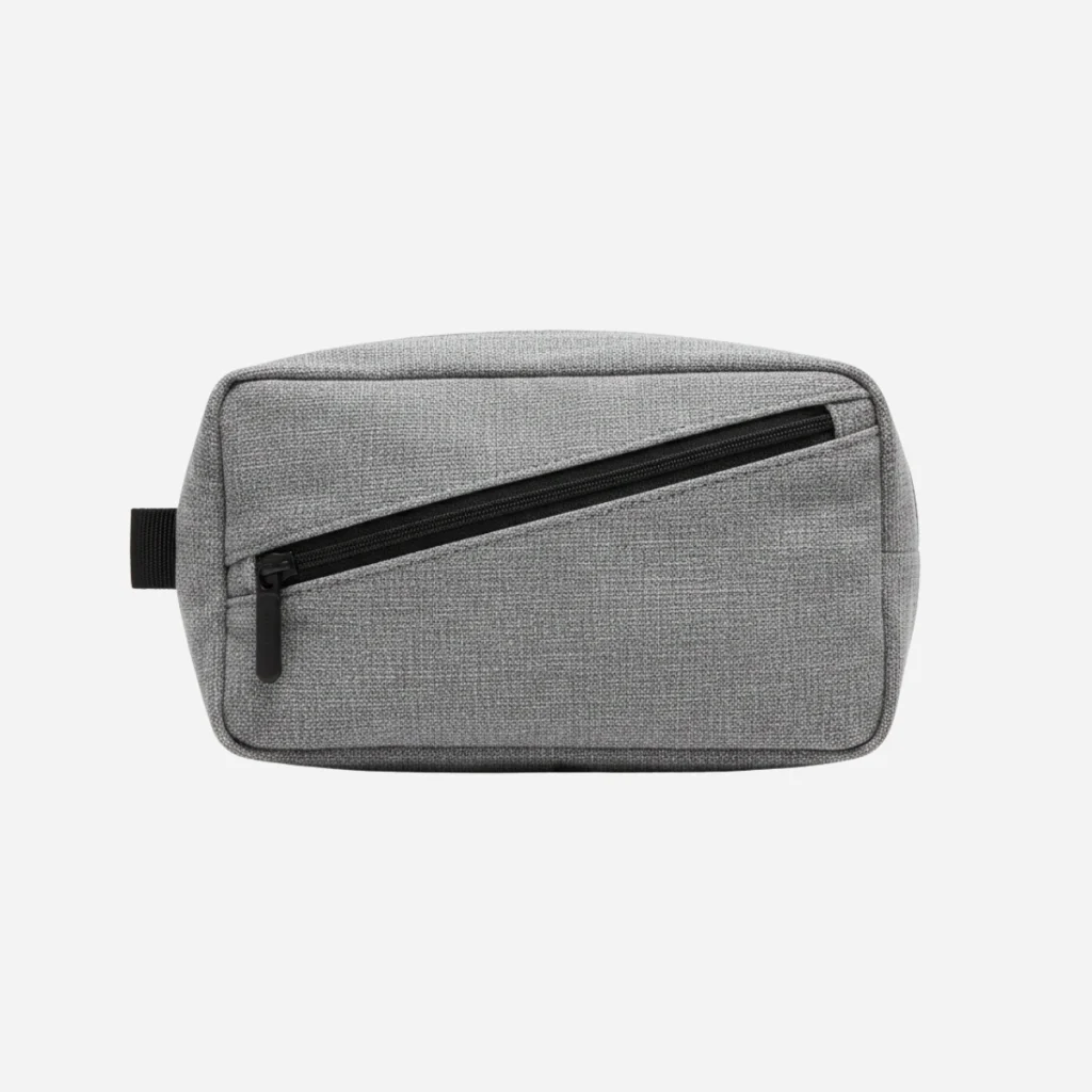 The Minimalist Canvas Tech Pouch is the ideal companion for the modern traveler or commuter. Crafted with a heathered light gray material that resembles canvas, it offers a sophisticated yet casual look. The asymmetrical diagonal zipper not only adds a unique design element but also provides quick, secure access to frequently used items. This pouch is designed to protect your small electronics from daily wear and tear.